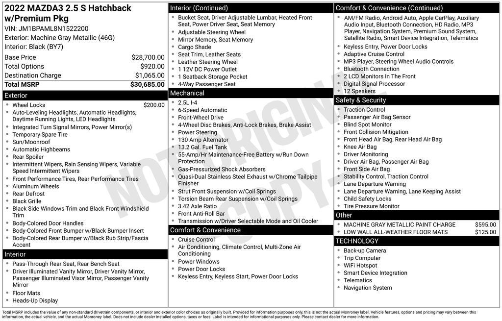 2022 Mazda3 Hatchback Premium